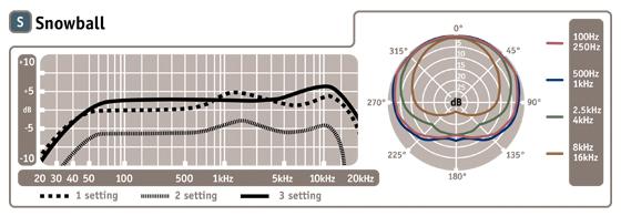 The Blue Snowball is a USB Dual Capsule Condenser Microphone It has a 3 pattern switch enabling you to select a Cardioid pattern, a Cardioid pattern with a -10dB pad or an Omnidirectional pattern.