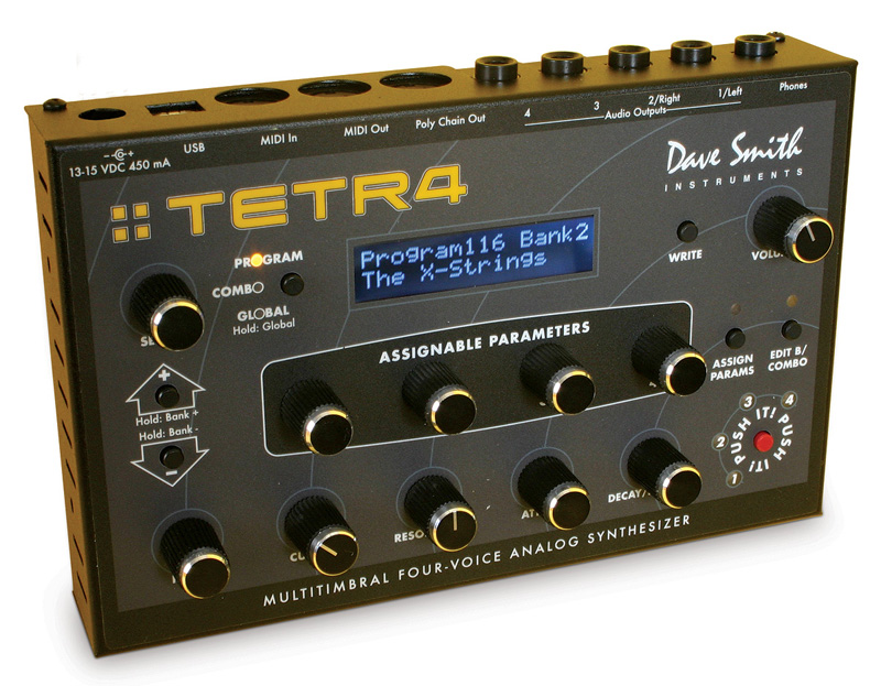 Similar to the Mopho, with voice architecture is based on the Prophet '08, the Dave Smith Instruments' Tetra is a fully programmable four-voice, analog polyphonic multitimbral synthesizer. Purchase this keyboard online now and get free shipping and double manufacturer's warranty!*