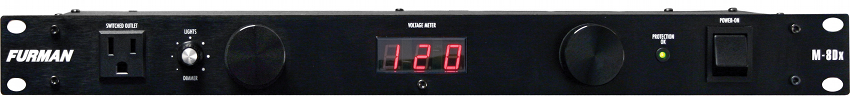 Furman's Merit Series M-8DX Power Conditioner offers eight rear switched outlets and one convenient front outlet with a digital voltmeter display.