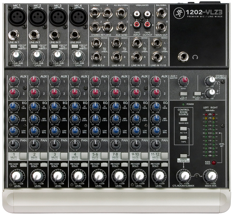 The Mackie 1202 VLZ3 is compact 12 channel mixer that includes: