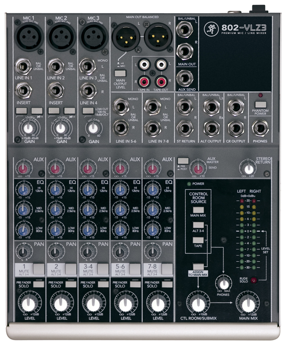 The Mackie 802 VLZ3 is an ultra compact 8 channel mixer that includes: