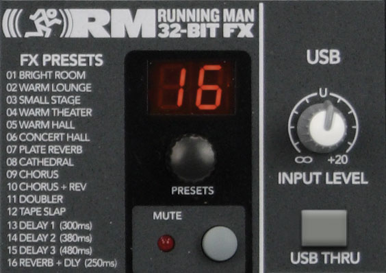A 7 band graphic EQ is available for the Main outputs. Built in 32 bit “RMFX” effects processor that include reverbs, delays and chorus.