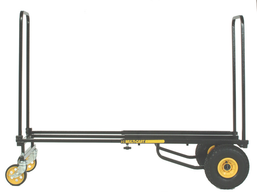 The Rock n Roller R-10 cart is made of a powder-coated steel tube frame that telescopes from 34″ to 52″ in length with 24″ foldable sides. 10″ x 3″ pneumatic rear wheels and 5″ x 1.25″ front swivel casters with brake.