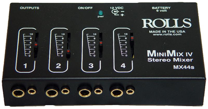 The Rolls MX44s is a compact 4 channel stereo mixer. It is designed to accept 4 stereo line level signals from cd players , MP3 players, instruments, etc. to a single stereo line out.