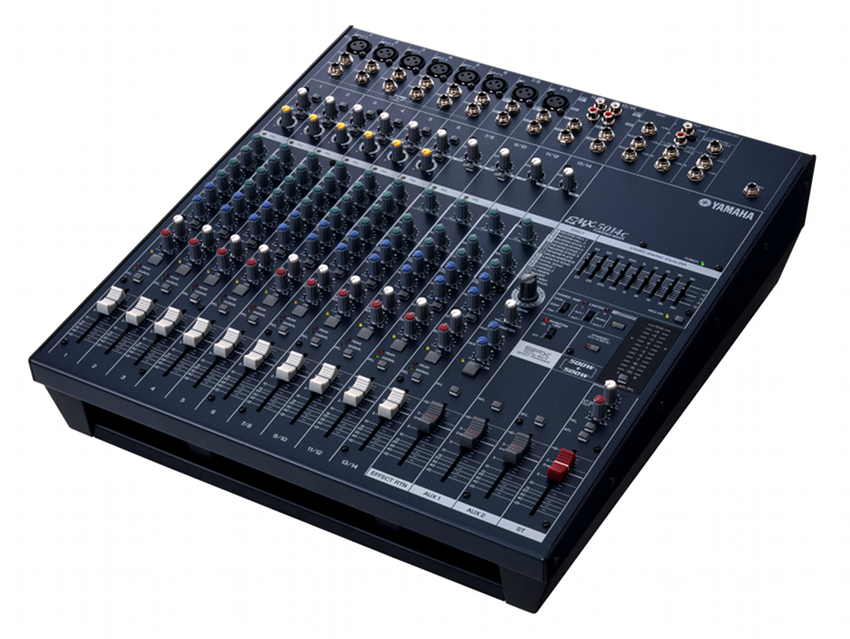 The EMX5014C is a console style powered mixer with 14 channel inputs and a dual 500 watt power amp built in.